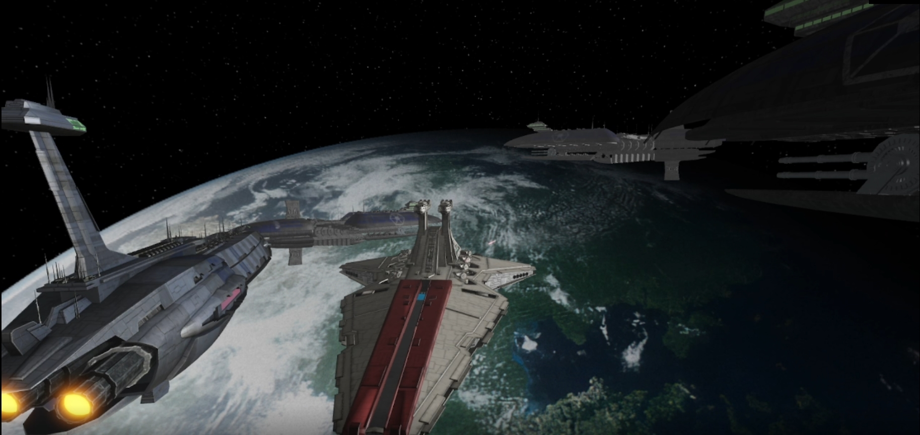 In response to the Republic’s ultimatum, the CIS launched a full invasion of Alderaan Space with a large fleet composed of Munificents, Providences, and hundreds of starfighters supported by massive droid deployments.
